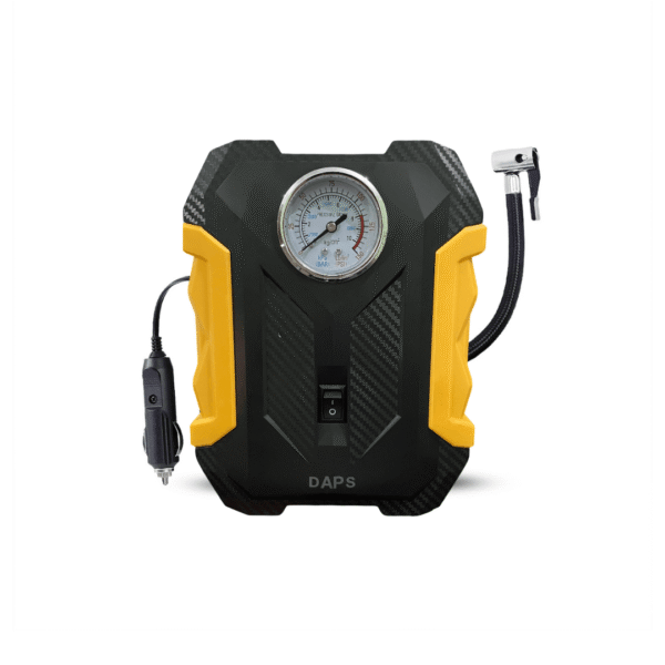 DAPS Portable DC Analog Tyre Inflator delivers up to 150 PSI for fast, reliable inflation. Features a digital pressure gauge, built-in LED light, and 12V DC compatibility—perfect for cars, bikes, and emergency use.